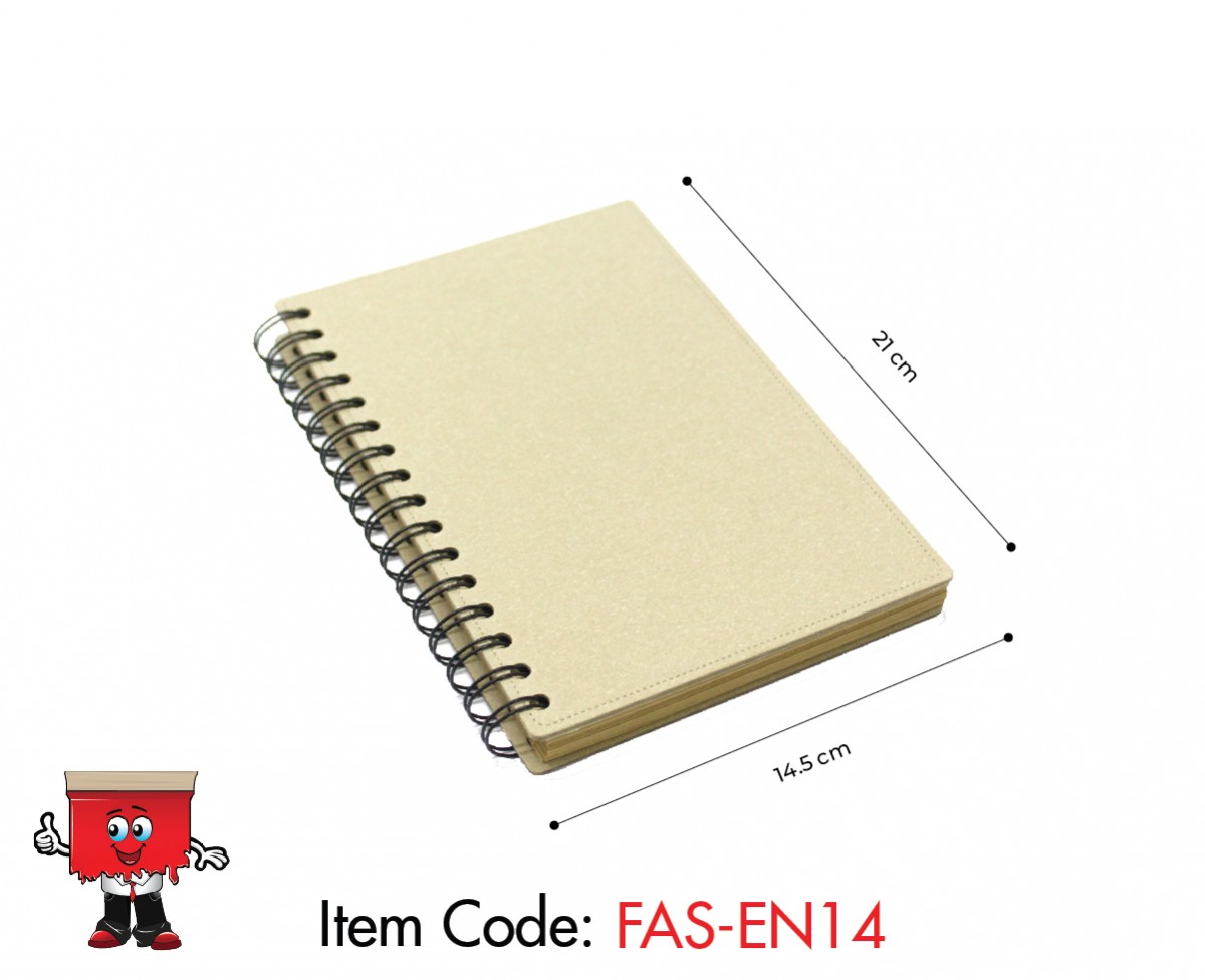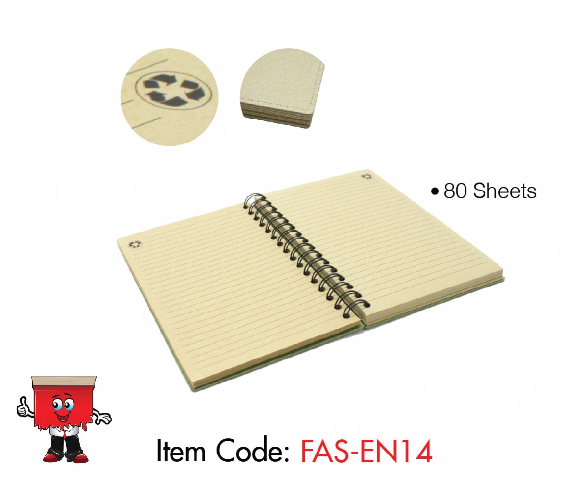 A5 Size Recycled Notebook, Spiral Bound with 80 Sheets Color: Beige, Green & Black Size: 14.5 x 21 cm Printing Options: Screen printing, UV printing