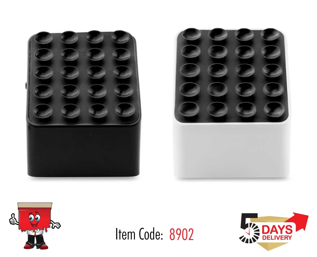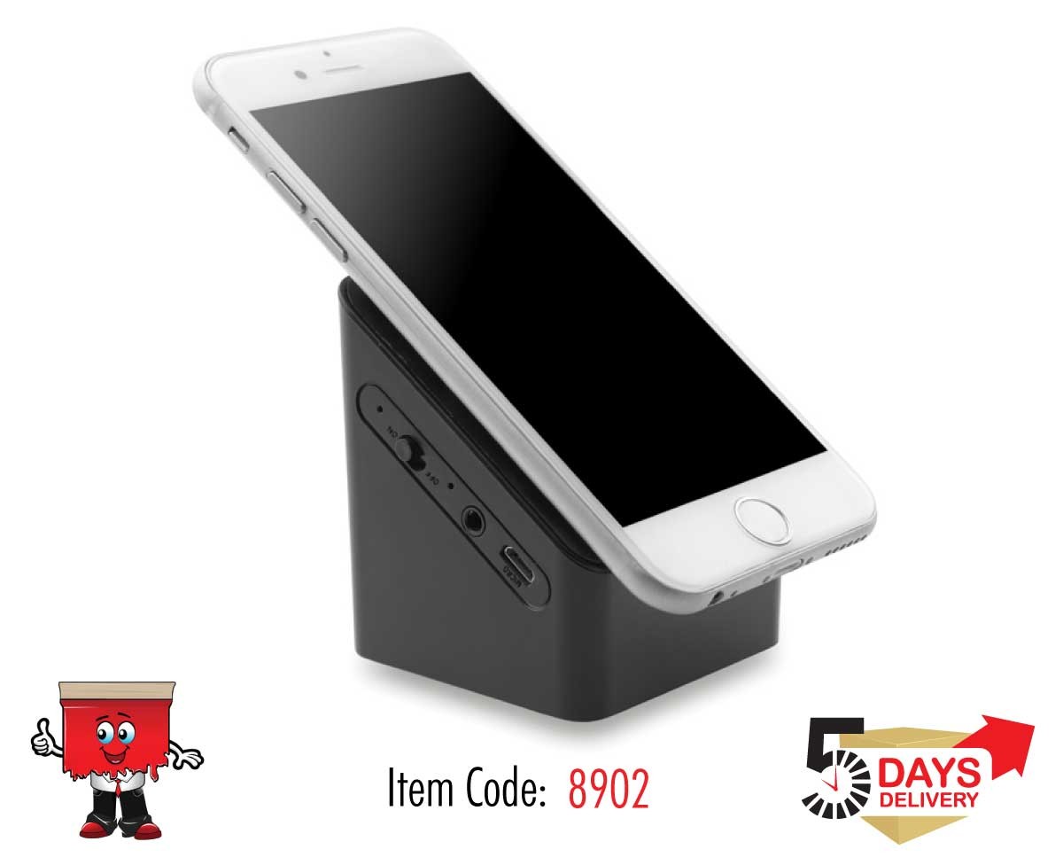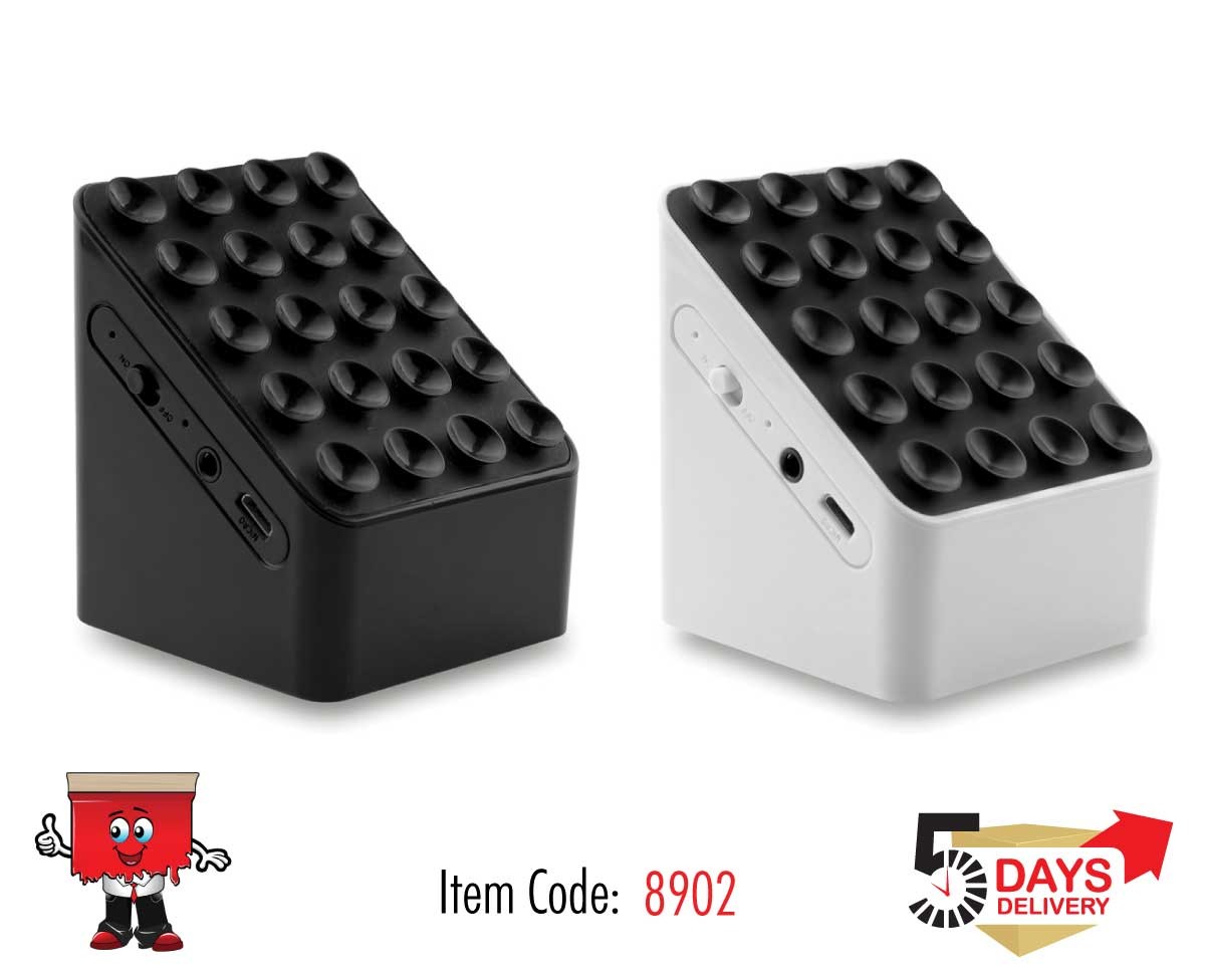 2.1 Bluetooth speaker and smartphone holder with suction cups on the top. Rechargeable Lithium 400mAh battery. Output data: 3W and 4 Ohm.
