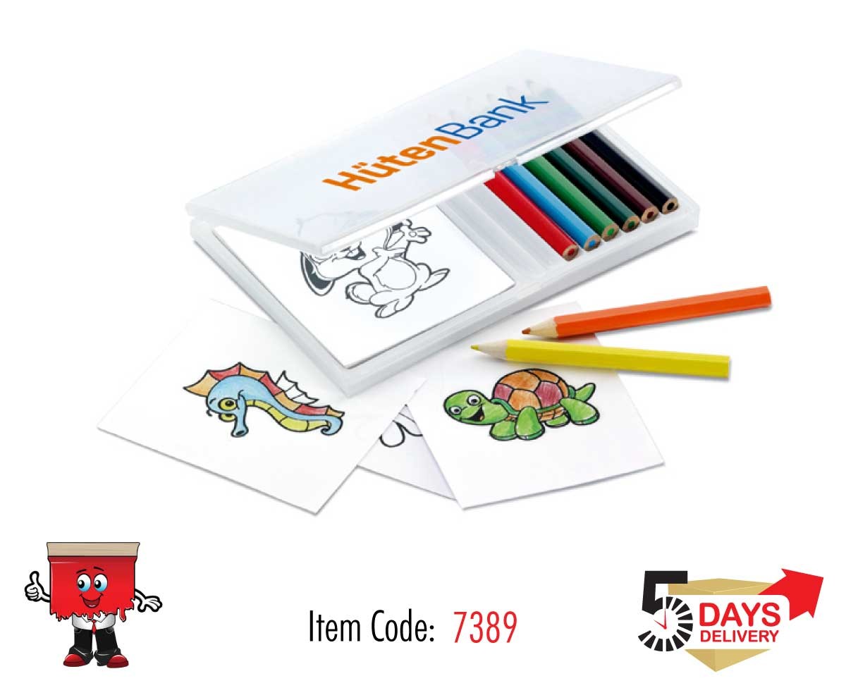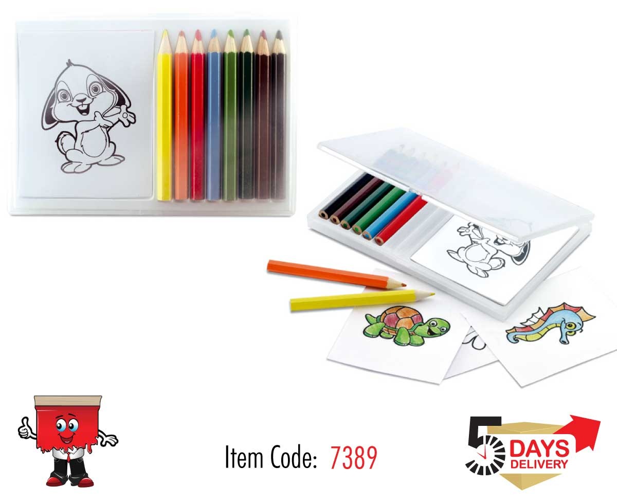 Colouring set in clear box contains 8 wooden pencils and 20 paper drawings.