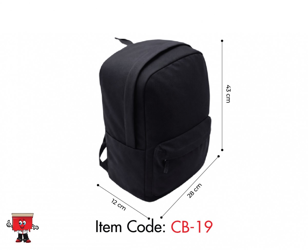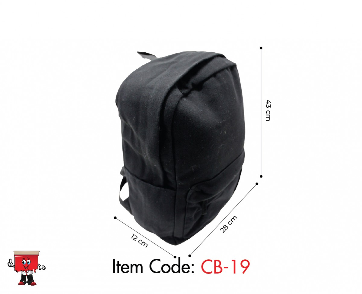 Cotton Backpack in Black Color Size : 28 x 43 x 12 cm Packing : 20pcs / carton Carton Size : 44 x 33 x 50 cm Carton Weight : 8.5kg