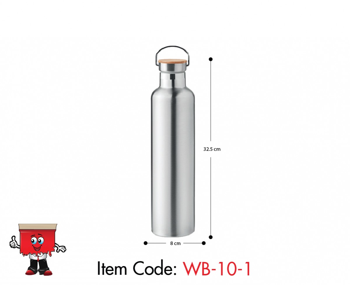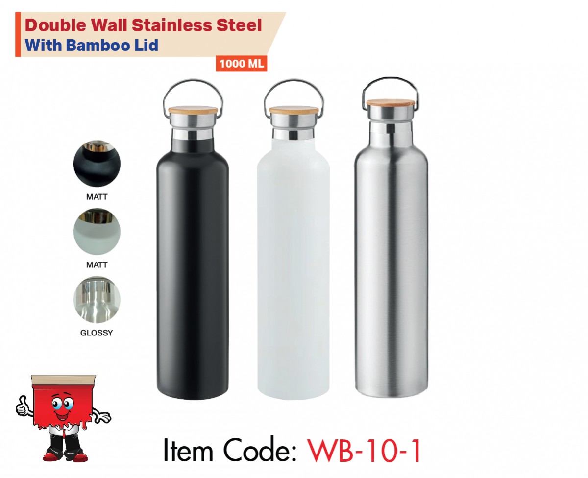Double Wall Stainless Steel Bottle with Bamboo Lid , 1000ml