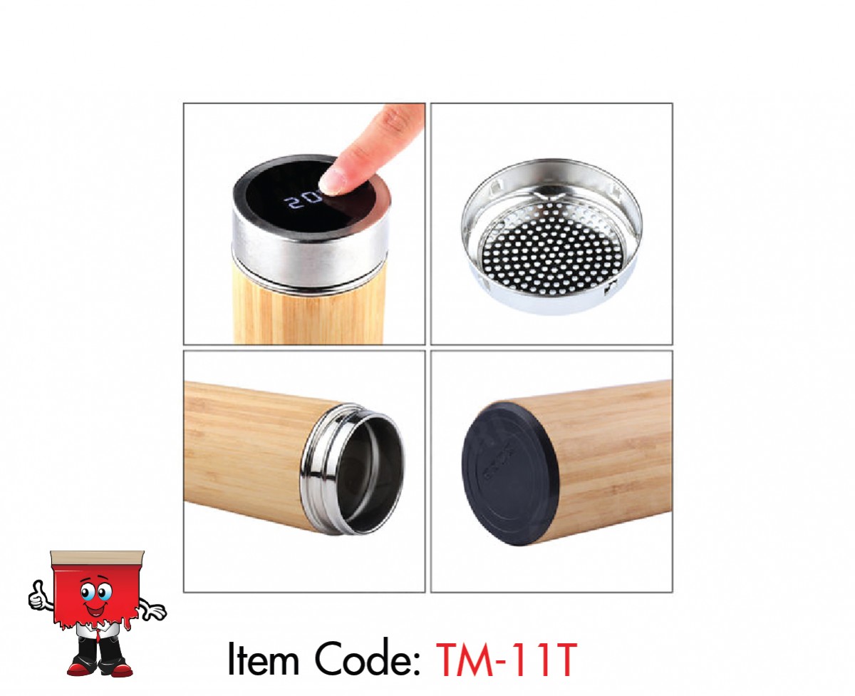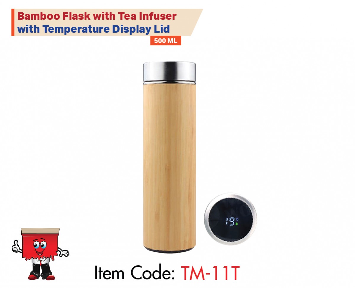 Bamboo Flask With Tea Infuser Ss Inside with Temperature Display Lid