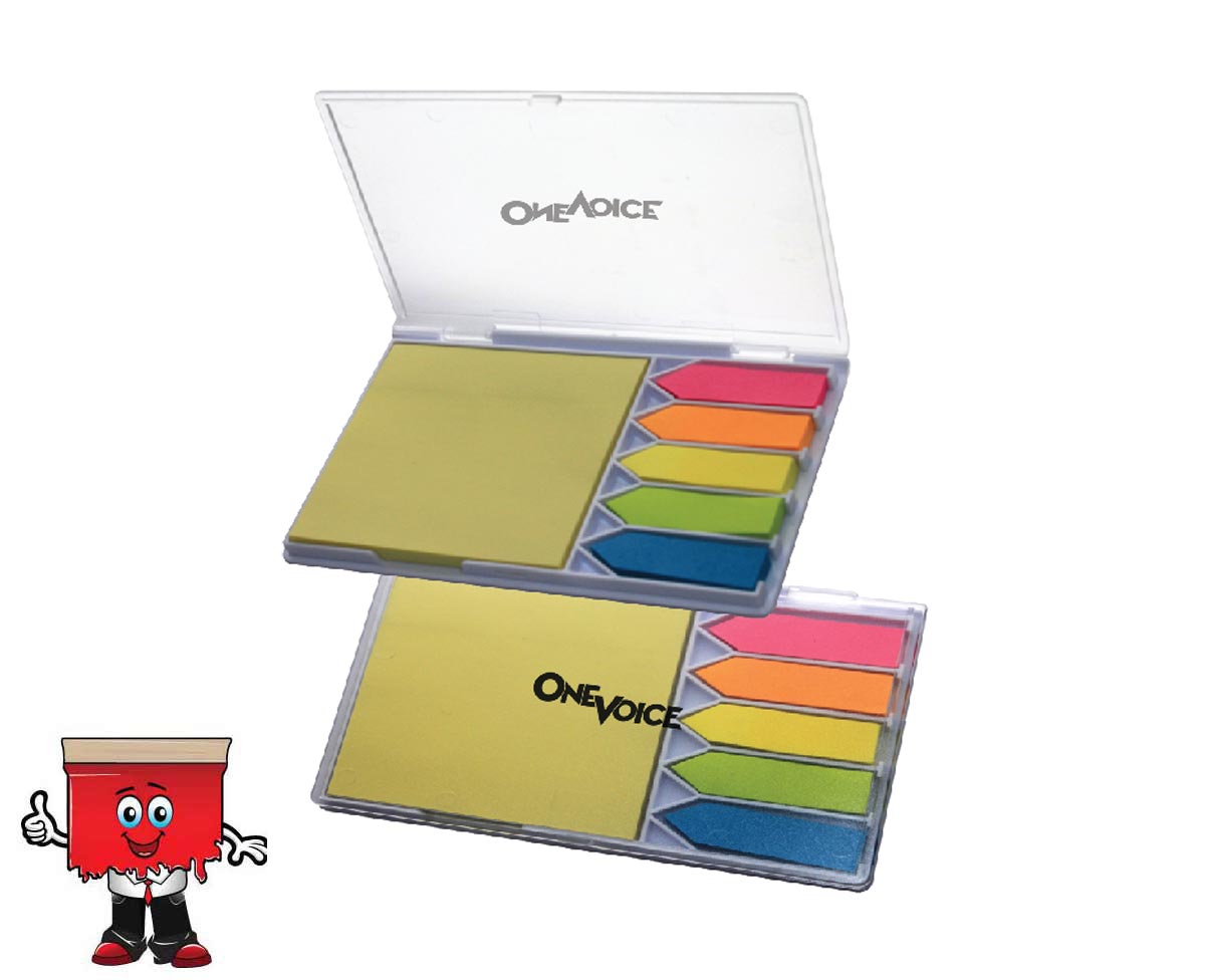 Contains 50 sheets of 75x75 yellow Sticky Notes with 5 Page Markers elegantly packed in a plastic holder with Frosted Clear Cover.
