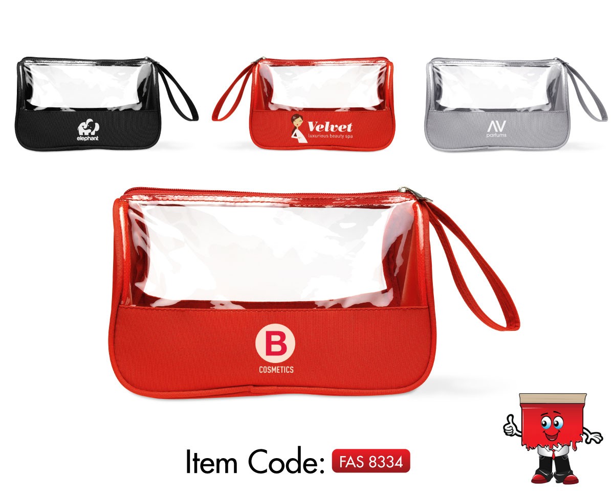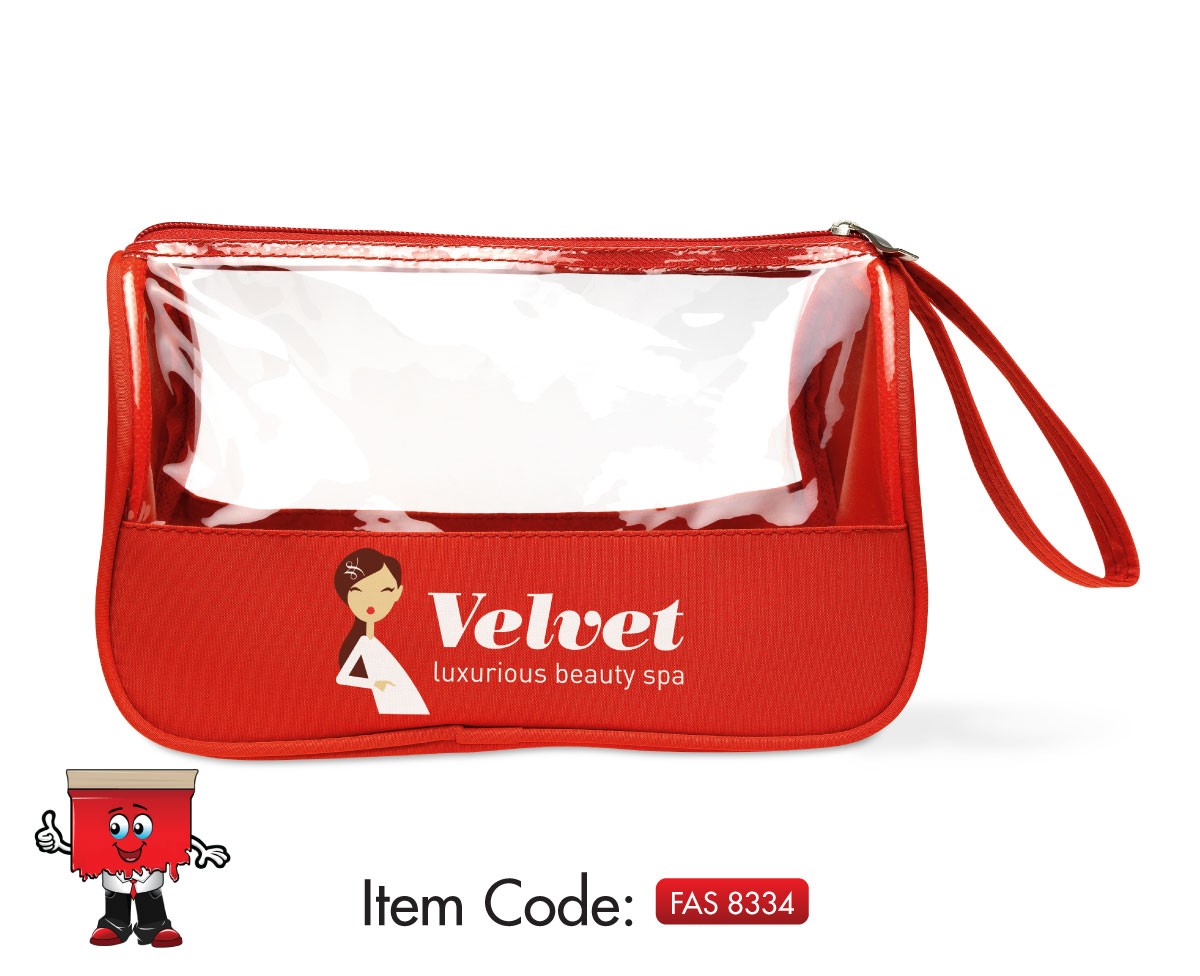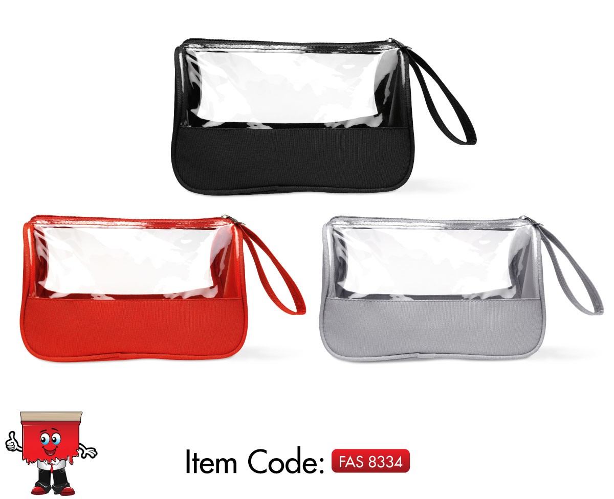 Toiletry bag in microfiber and PVC 6 Phthalate free, with wrist handle.