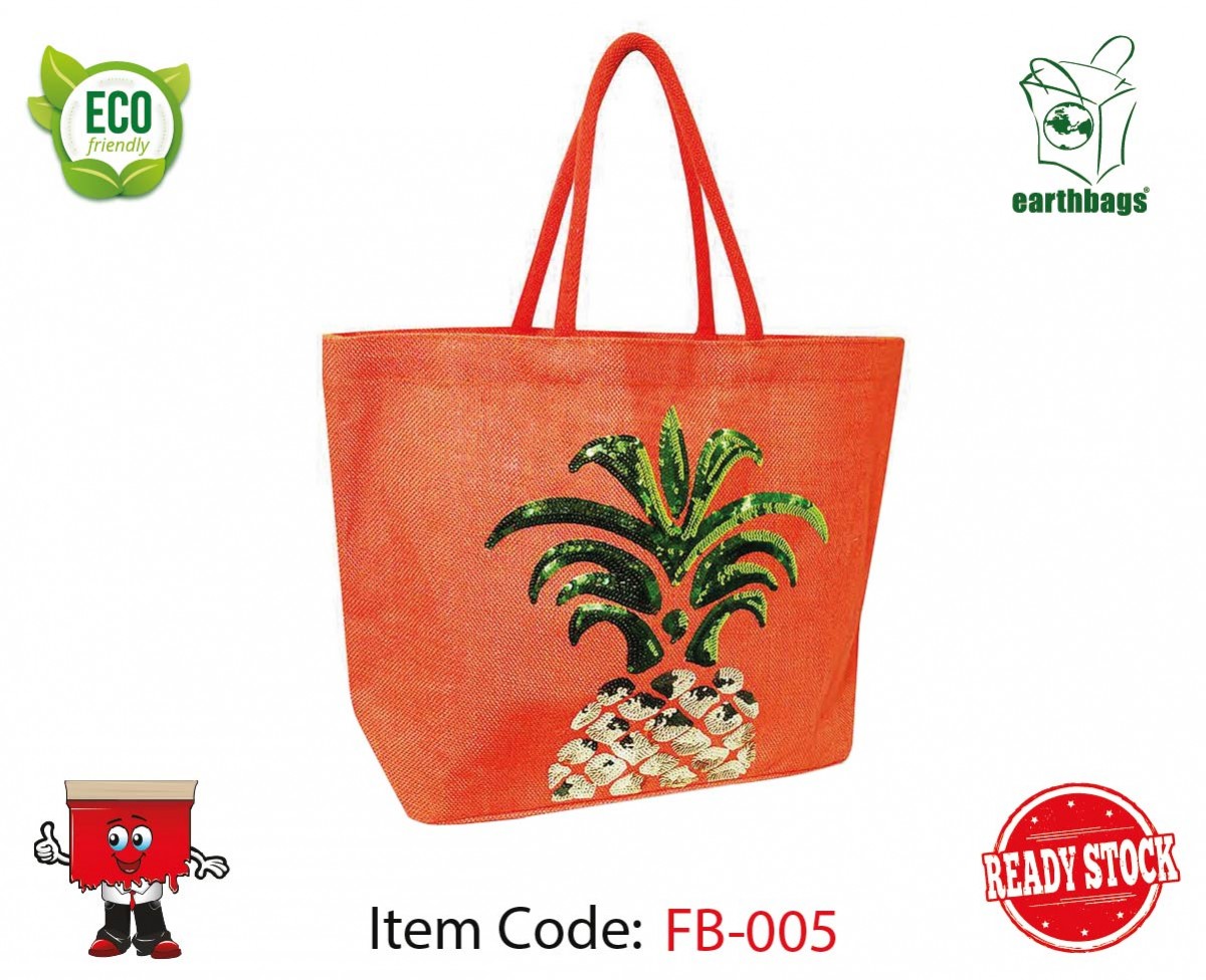 LAMINATED JUTE BAG WITH PADDED WEBBING HANDLES & SEQUINS DESIGN AT FRONT & MAGNET BUTTON ON MOUTH