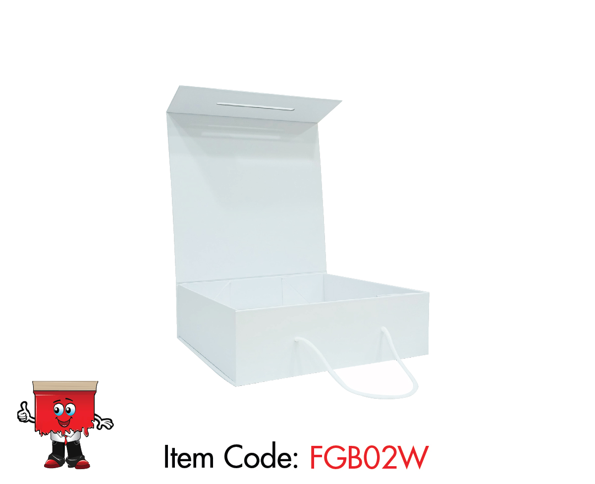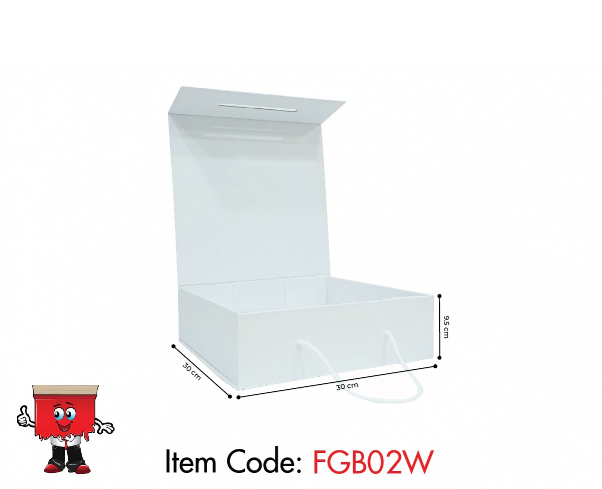 Folding Gift Box with Rope Handle, White Color Size: 30 x 30 x 9.5 cm