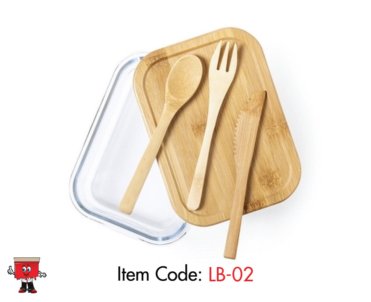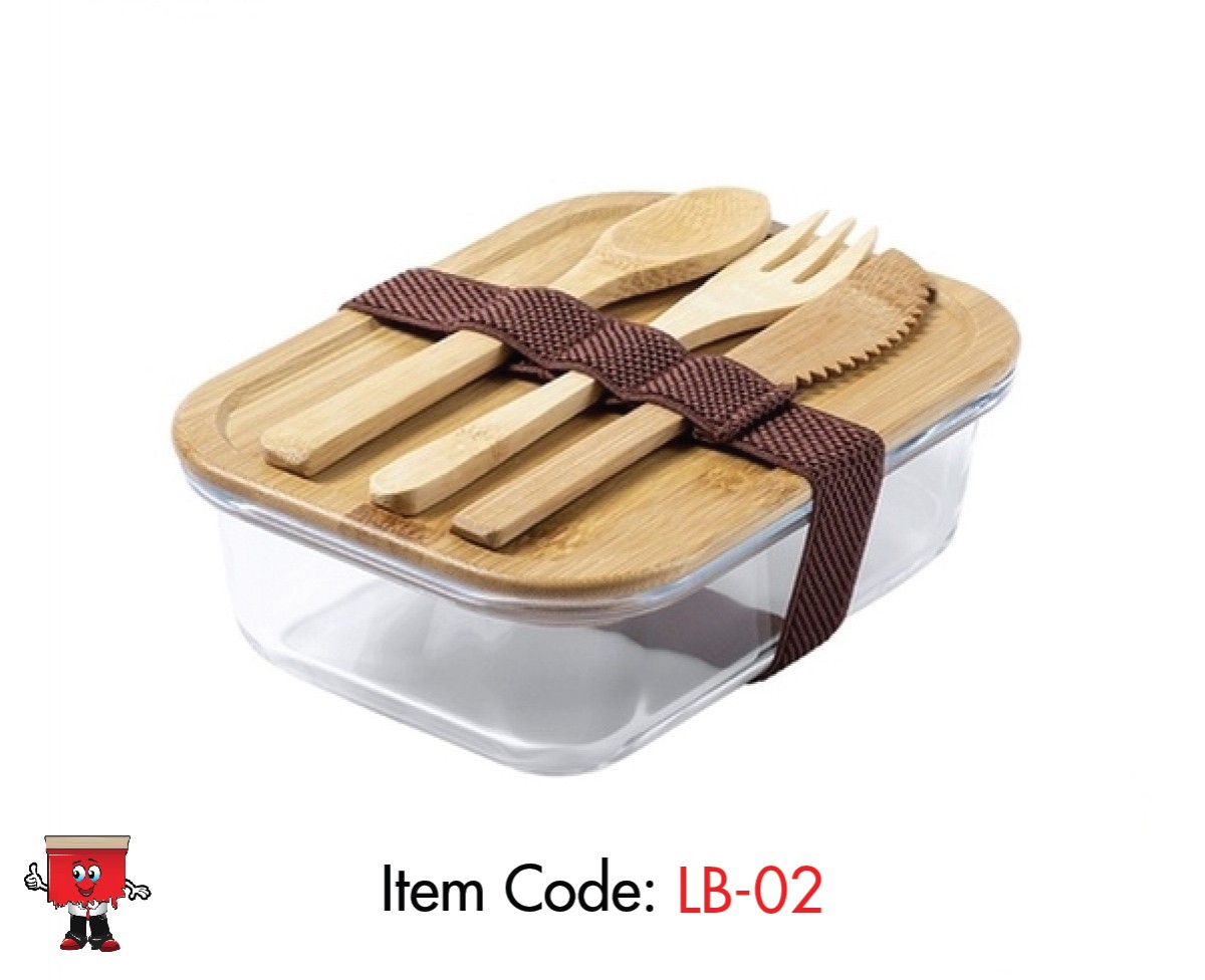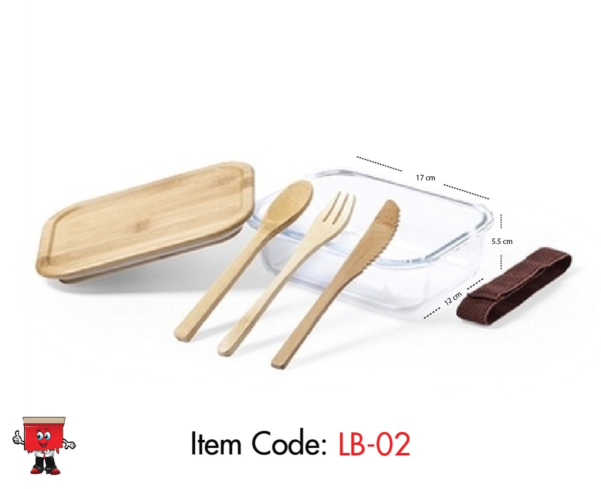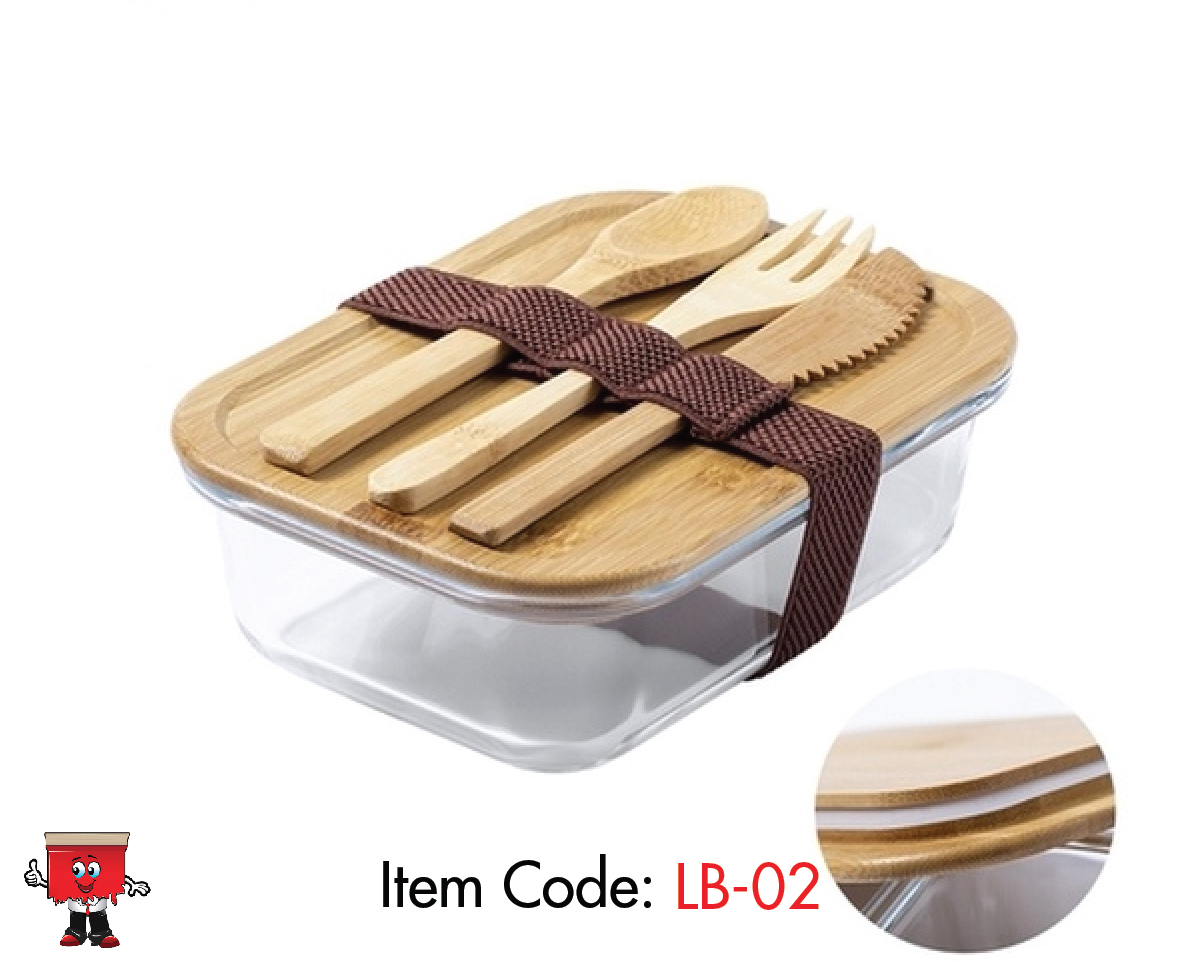 LB-02 : Eco-friendly Glass finsh Lunch box with cutlery and brown band