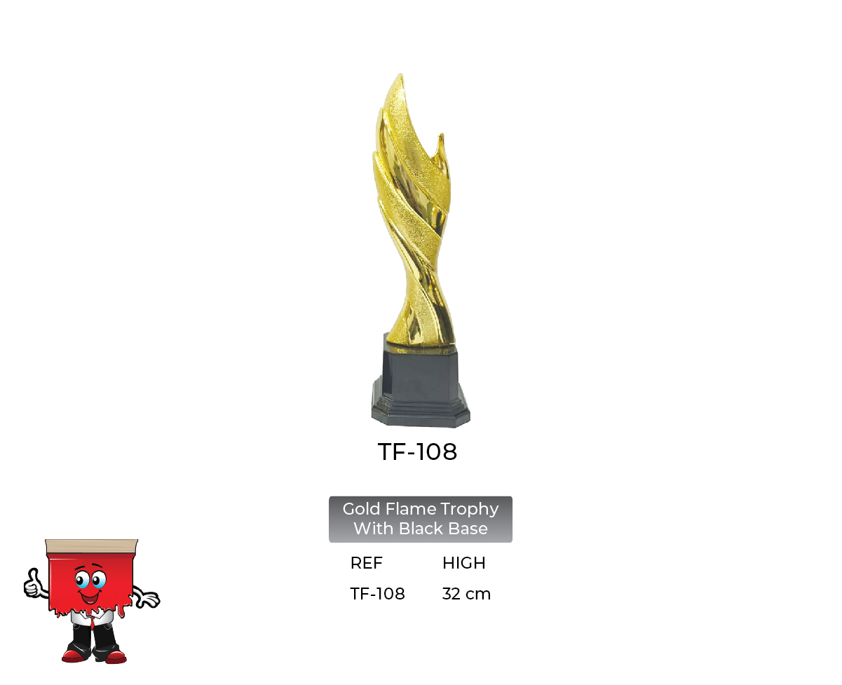 TF-108 : Gold Flame Trophy with Black Base, Size : 32 cm high