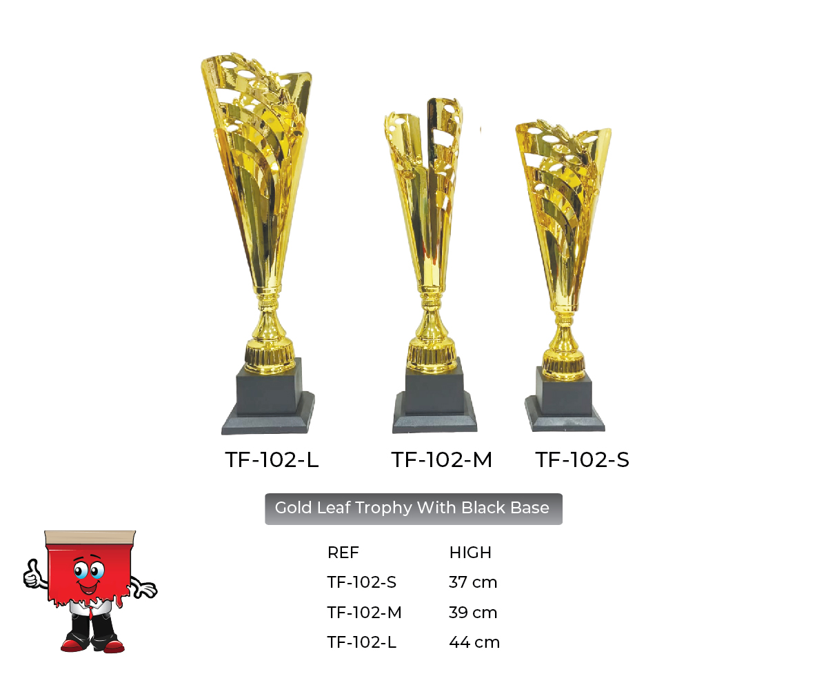 TF-102-L : Gold Leaf Trophy with Black Base, Large size : 44 cm high