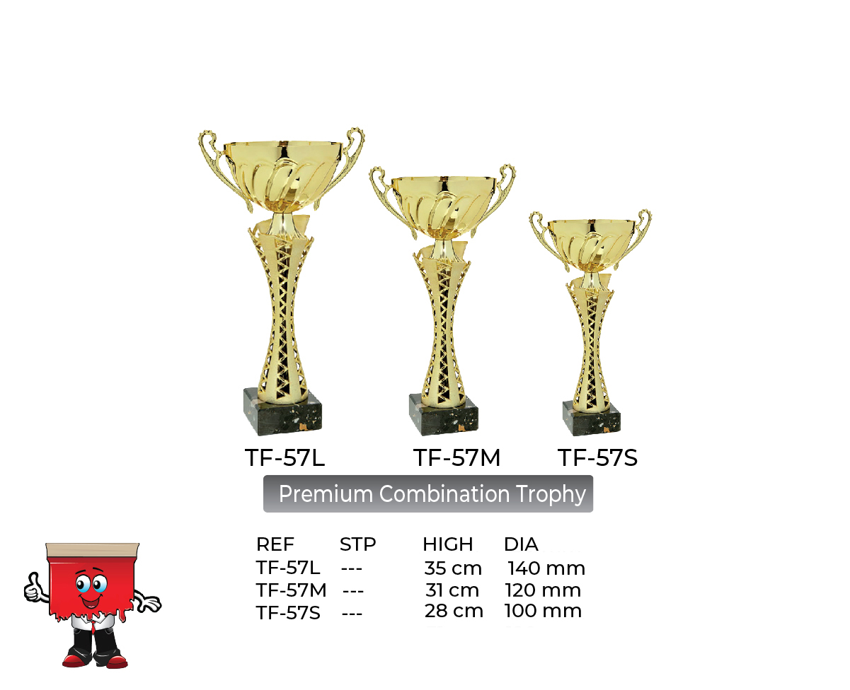 FAS-TF-57 : Premium Combination Trophy FAS-TF-57L : Size : 35 cm high FAS-TF-57M : Size : 31 cm high FAS-TF-57S : Size : 28 cm high