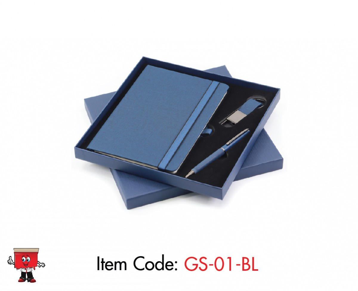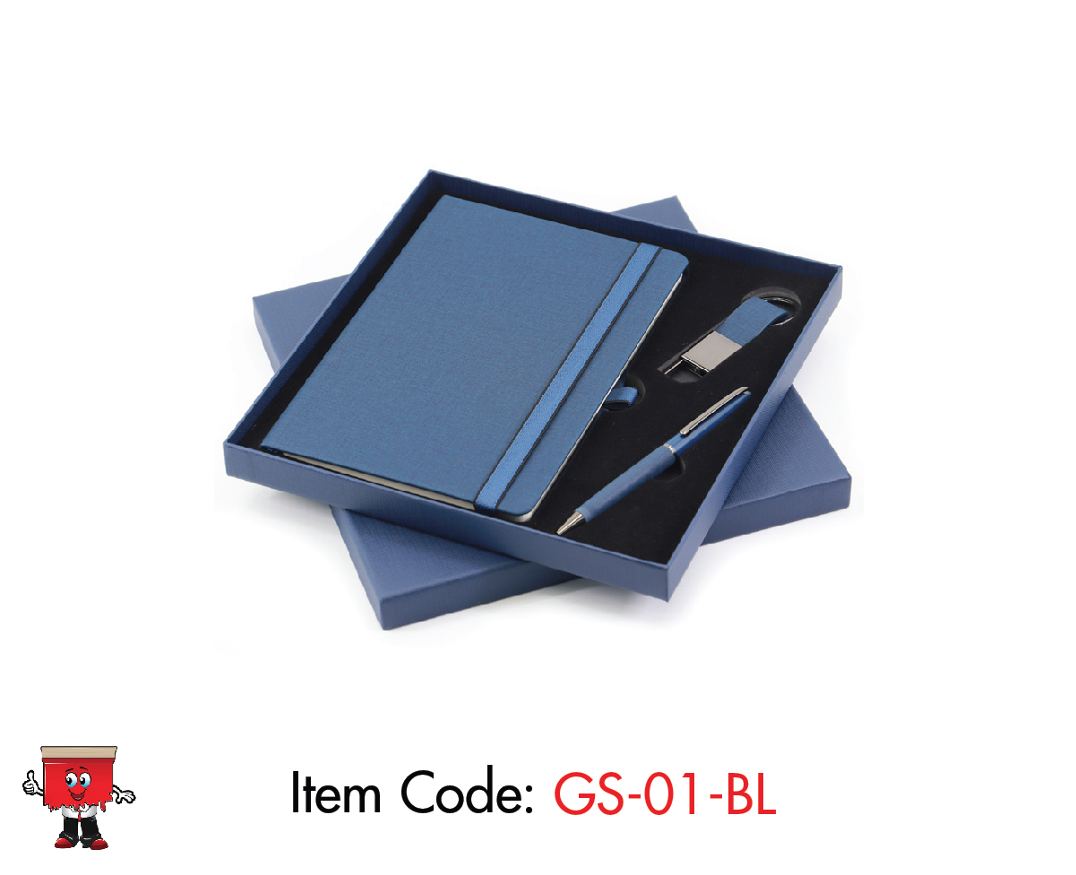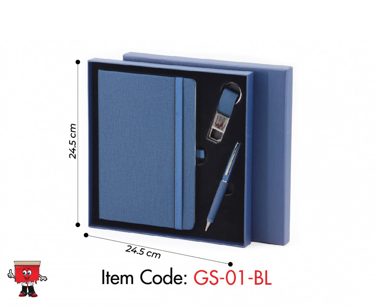 Premium Gift set with High Quality PU notebook , Pen and Metal keychain, Blue