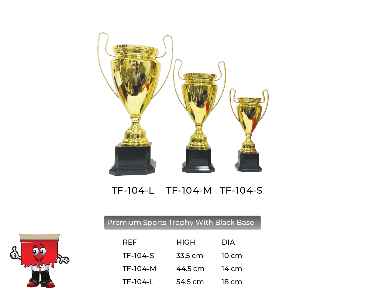TF-104-M : Premium Sports Trophy with Black Base, Medium, 44.5 cm High, Cup diameter 14 cm