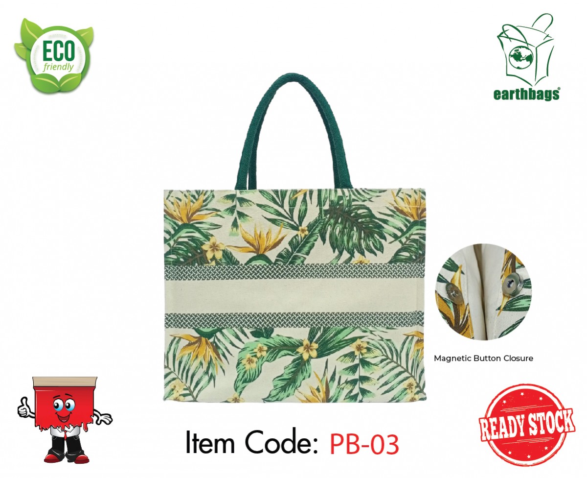 Printed Cotton Bag with inner Lamination and magnetic closure (Floral Print)