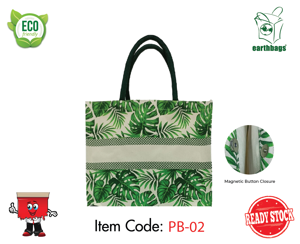 Printed Cotton Bag with inner Lamination and magnetic closure (Green Leaf Print)