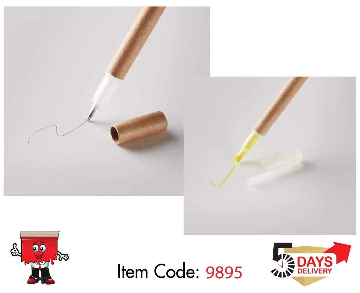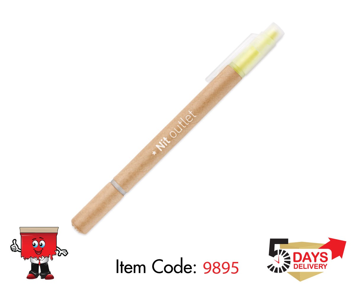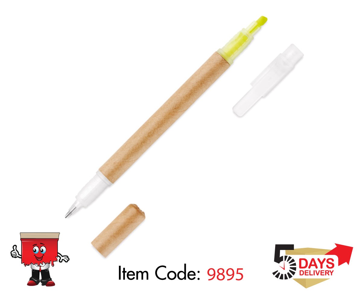 2 in 1 recycled carton barrel ball pen and yellow highlighter.