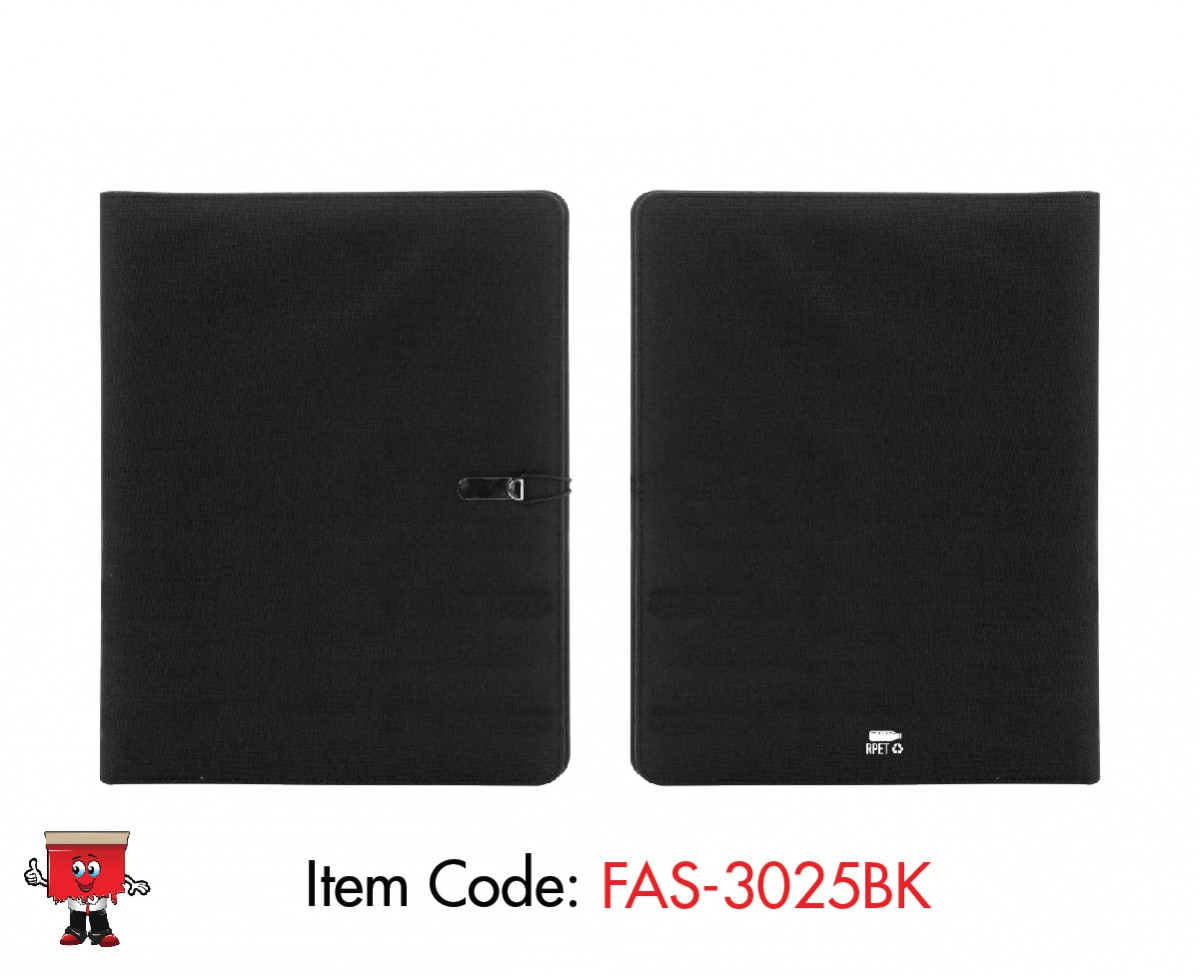 RPET Folder with side pockets and sleeve, Black Color Size: 18 x 21 cm Quantity: 50 Pcs Carton Size: 46 x 38 x 24.5 cm Carton Weight: 10.5 Kg