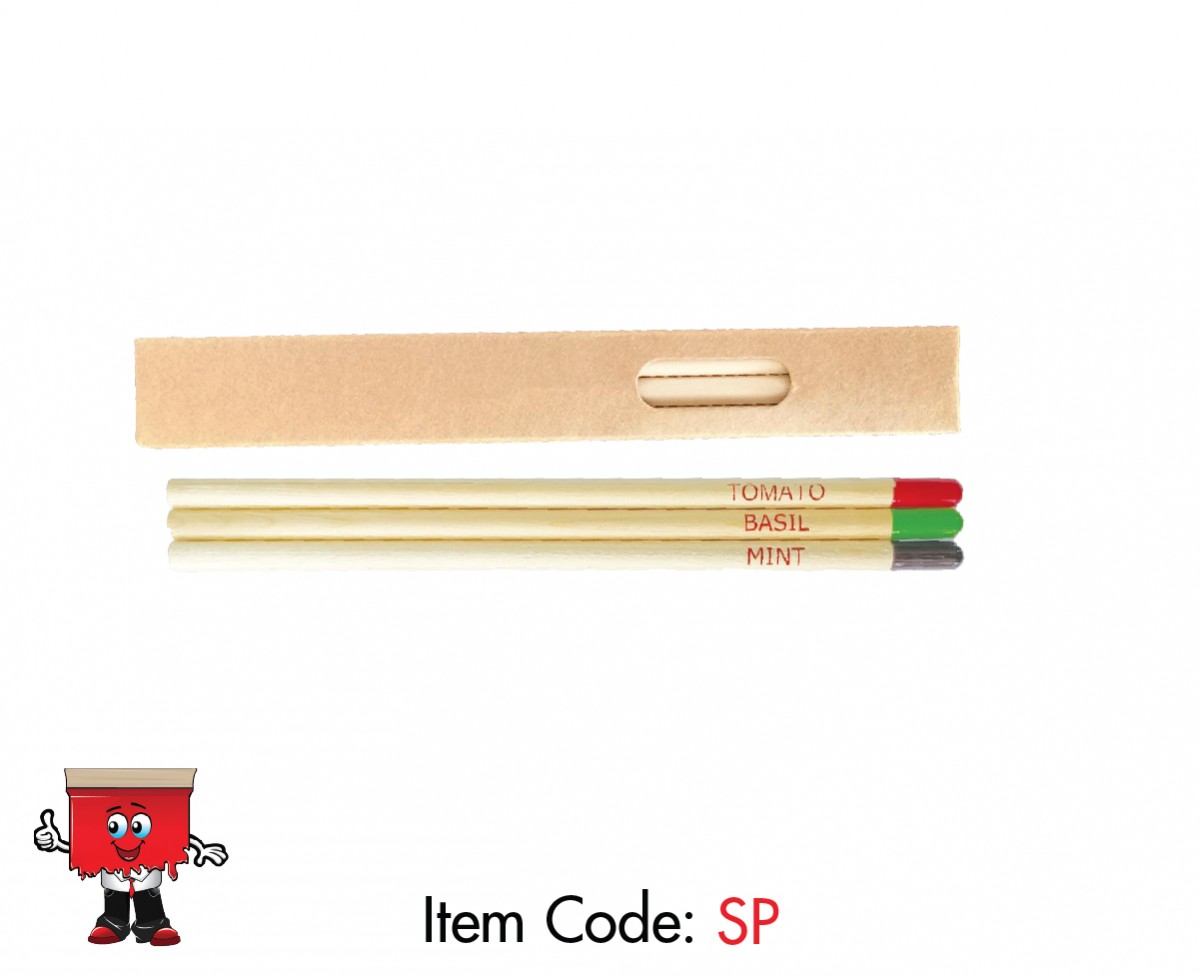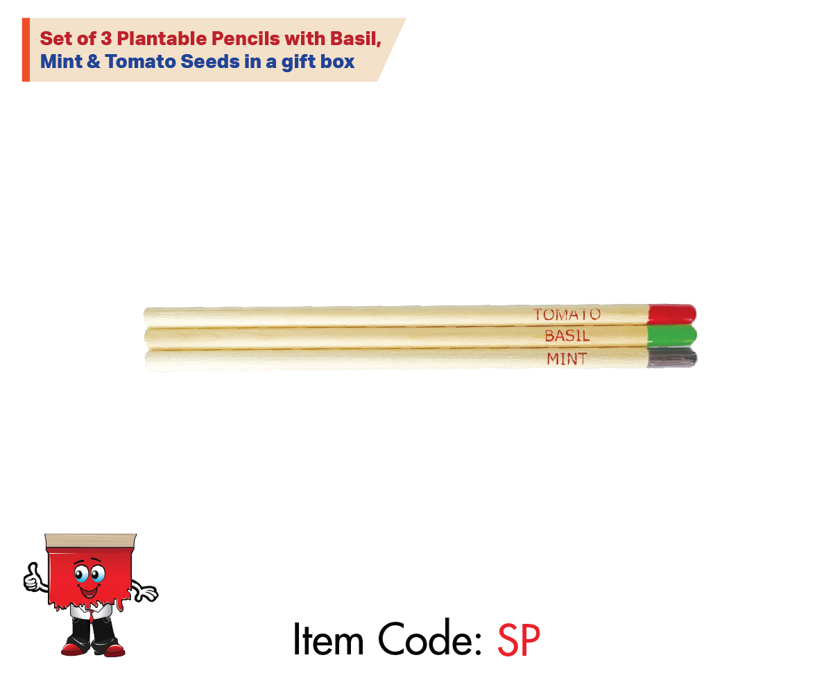 Set of 3 Plantable Pencils with Basil, Mint & Tomato Seeds in a gift box Box size: 19.5 x 2.5 cm