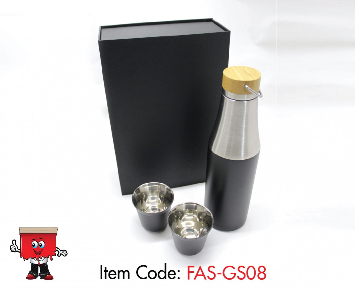 Stainless Steel Kahwa Cup Gift Set with Double wall Vaccum Bottle with Handle,