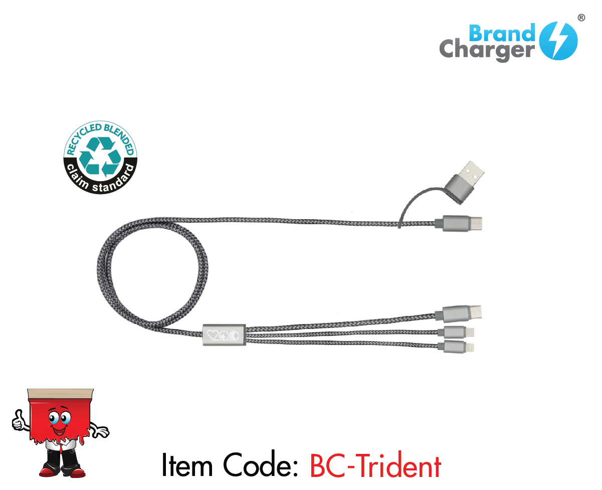Sustainable RPET-Nylon braided charging Cable Trident 2+, 3 in 1