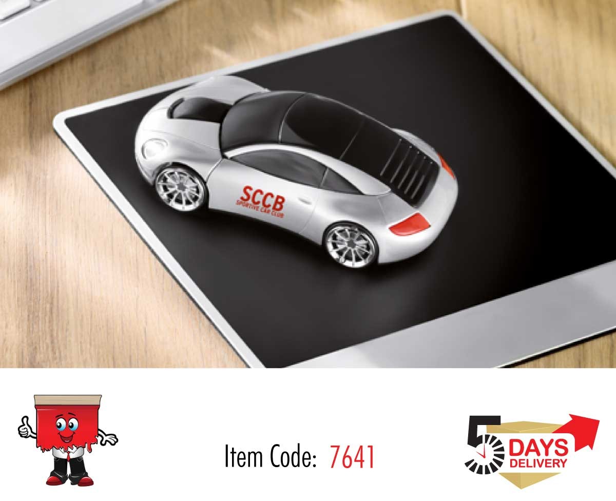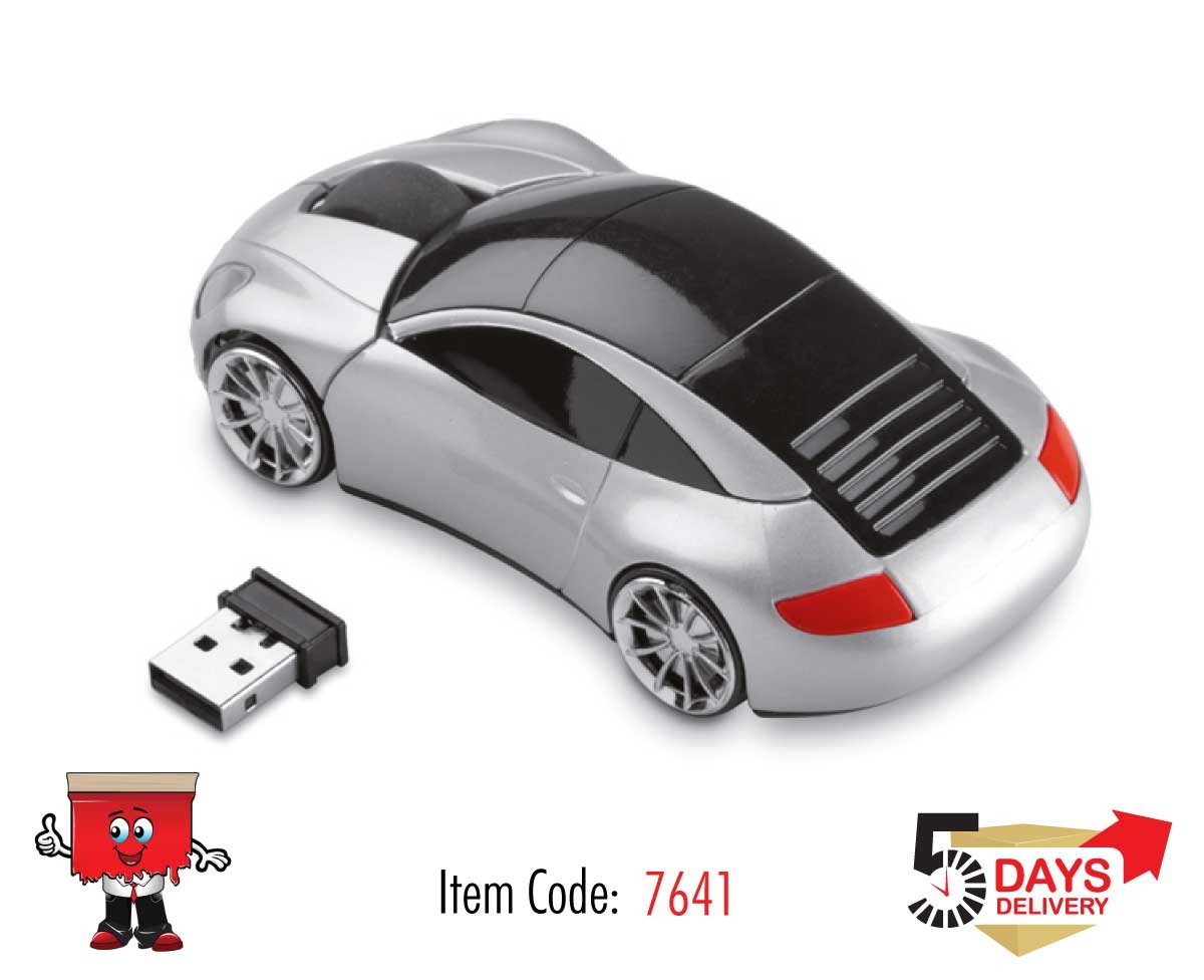 New generation wireless mouse in car shape with receiver located in the car trunk. ABS casing and black and silver shiny finish. 2 AAA batteries not included. 800 dpi.
